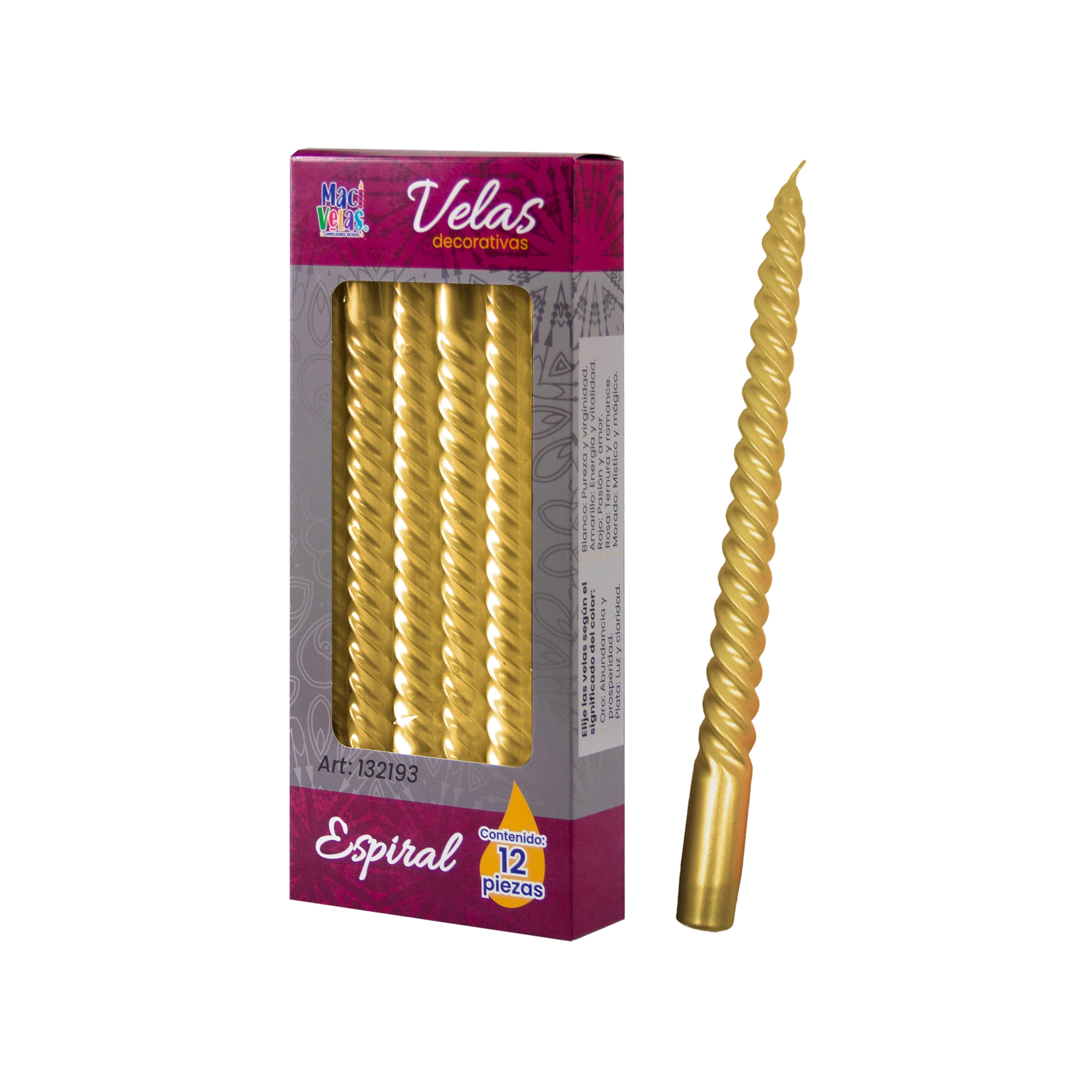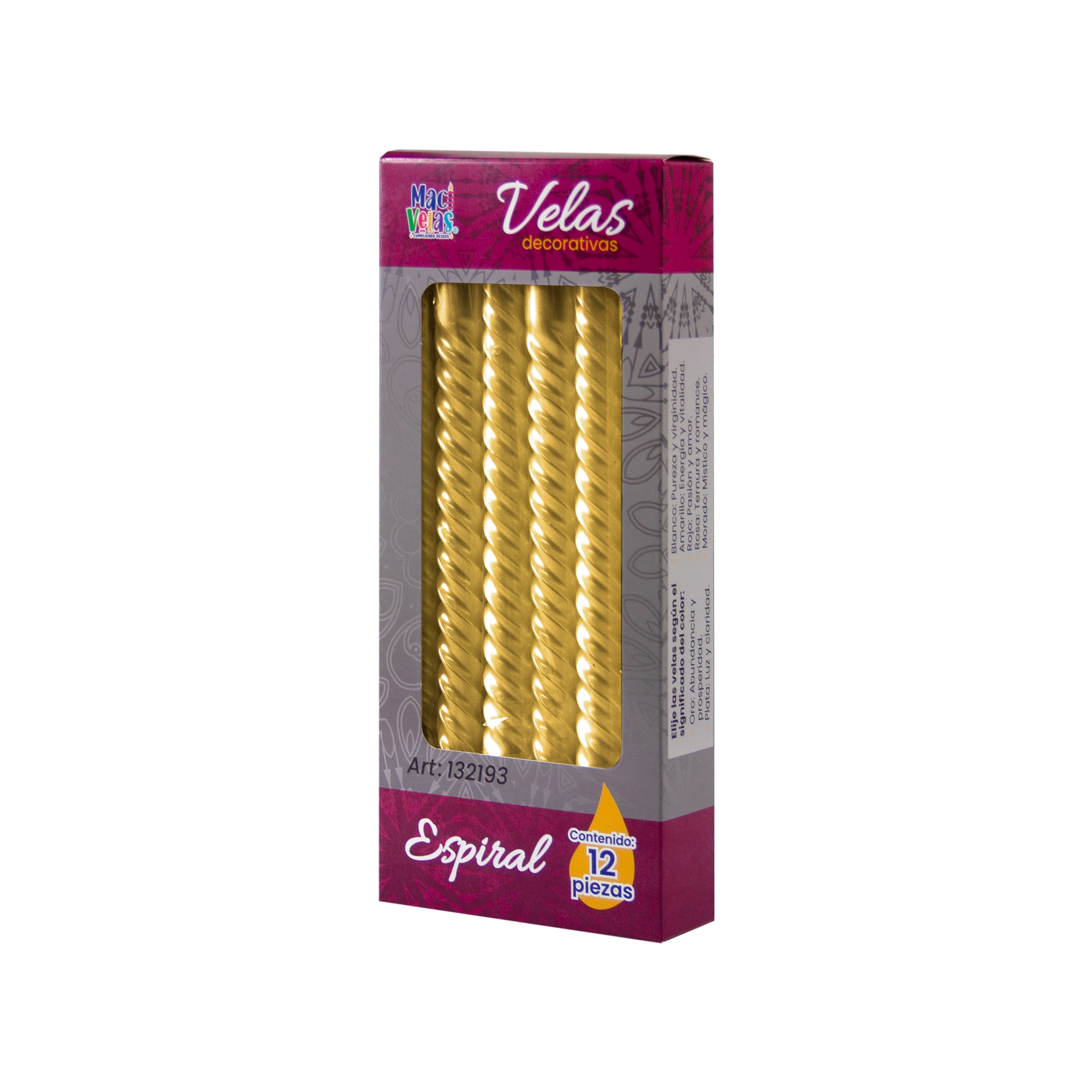 Vela Macivelas Decorativa Espiral Dorado (12 pzas)