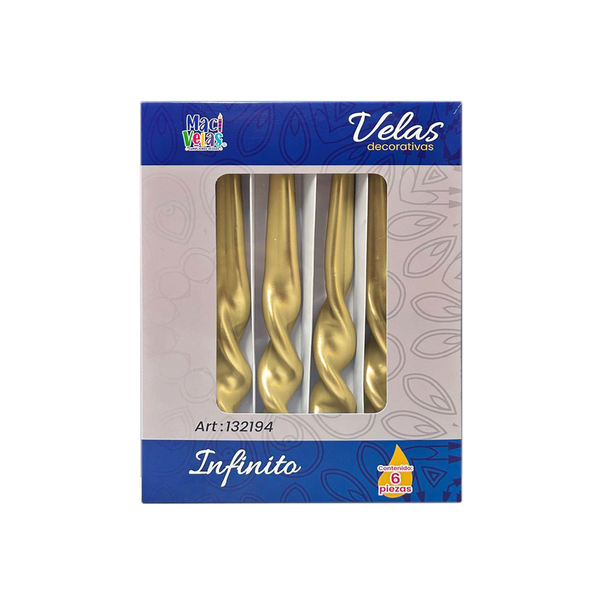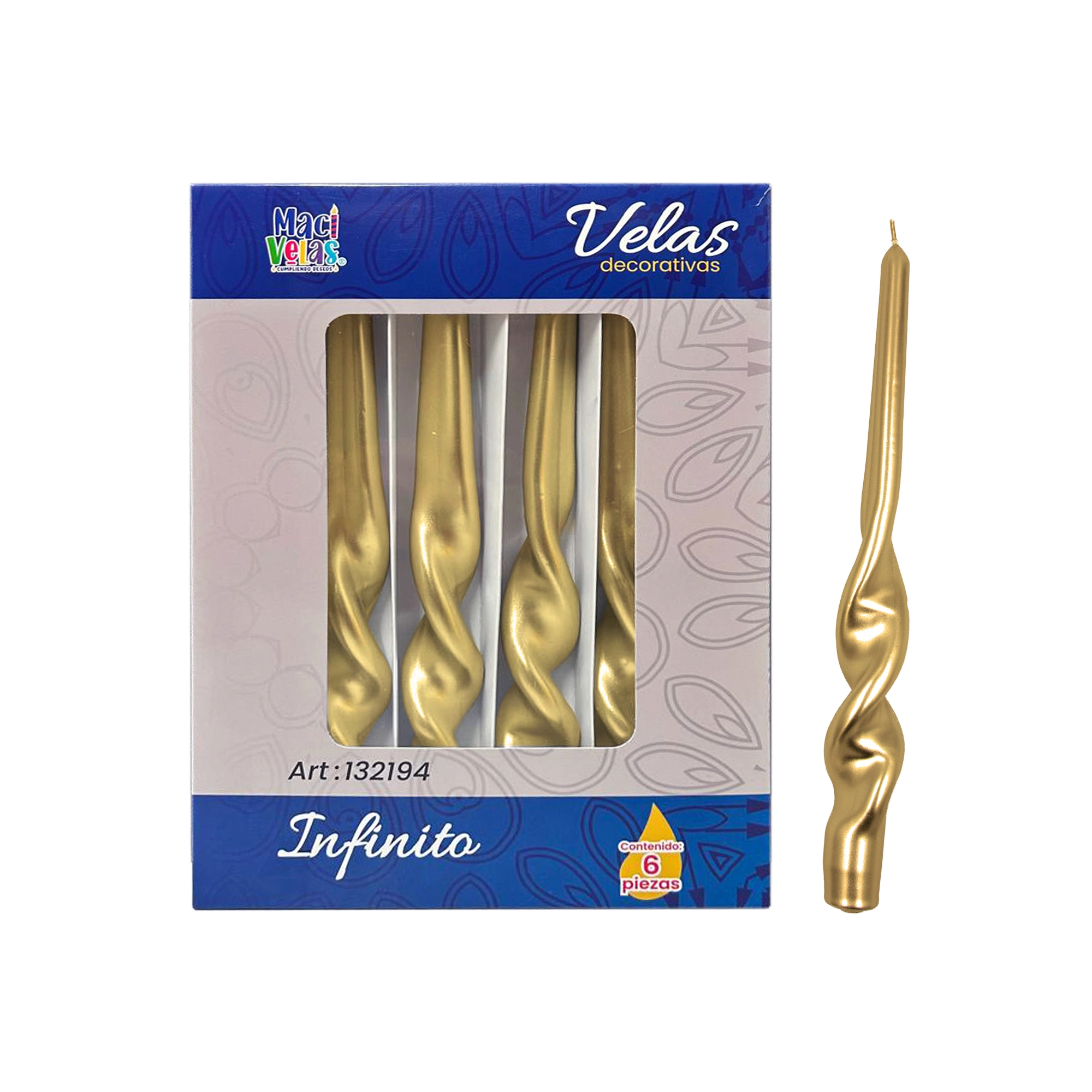 / Vela Macivelas Decorativa Infinito Dorado (6 pzas)