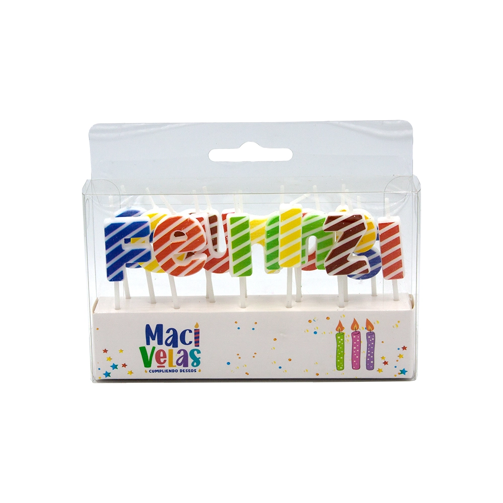 Vela Macivelas Letras “Feliz Cumpleaños” Colores Rayadas (15 pzas)