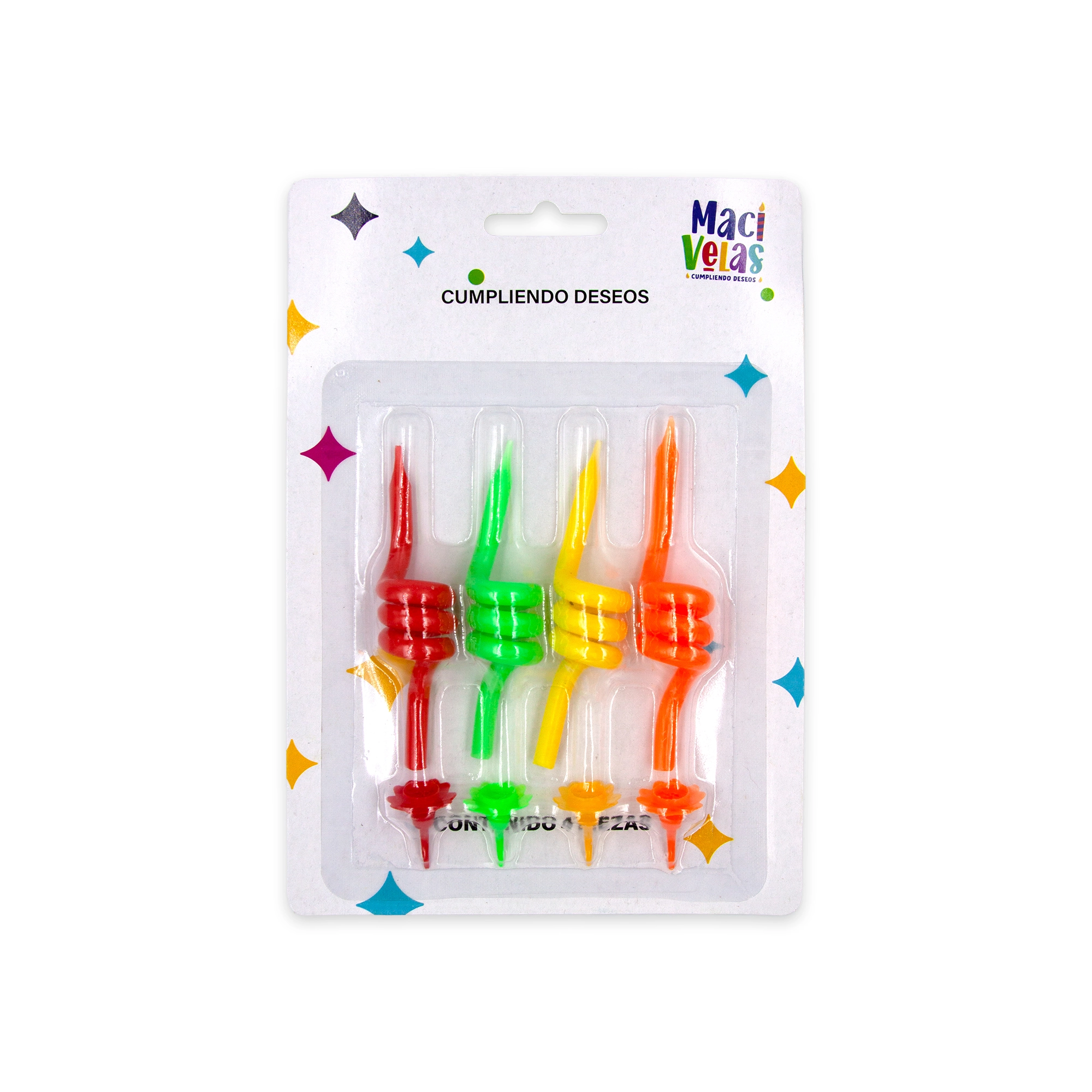 / Vela Macivelas Resorte Neón Multicolor (4 pzas)